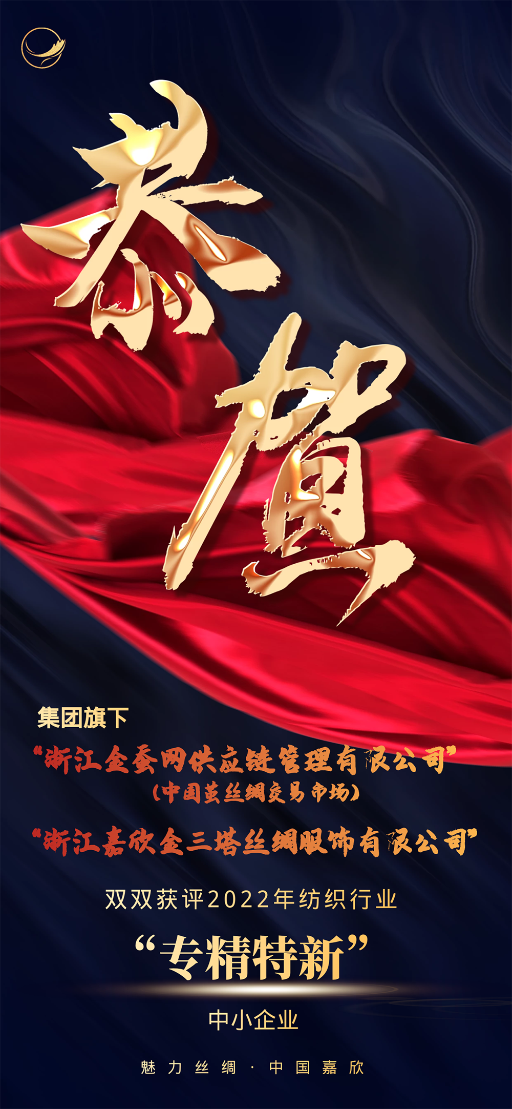 热烈祝贺“金蚕网”和“金三塔”双双获评2022纺织行业专精特新中